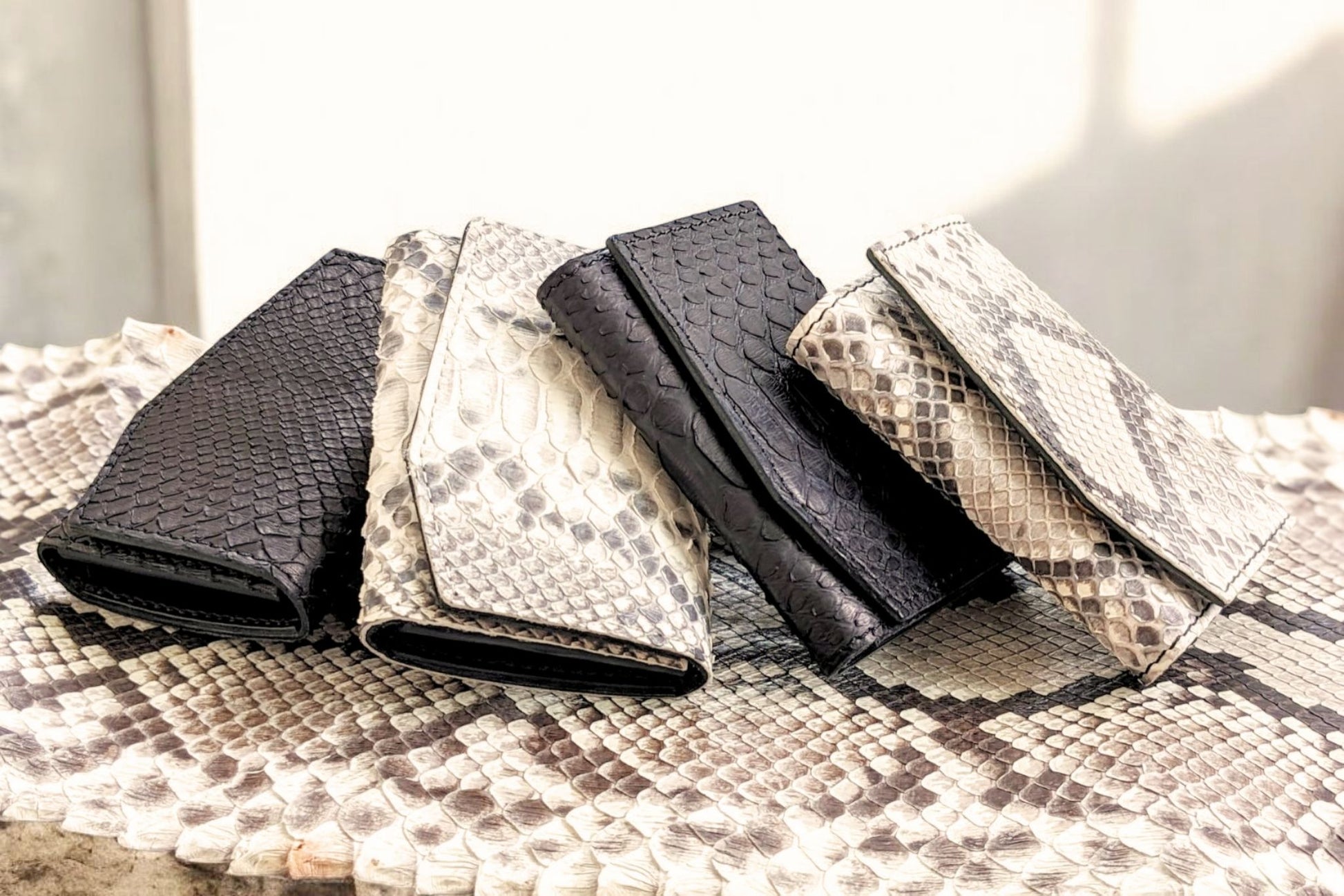 希少なダイヤモンドパイソン(本物の蛇革)を使用し、コンパクトさと高級感を両立。